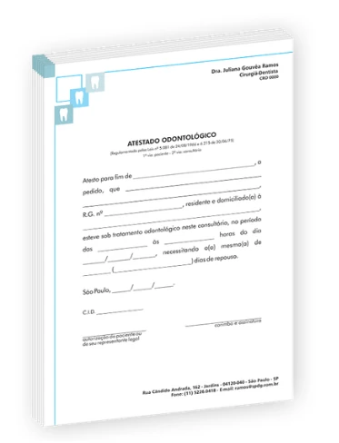 linha completa de atestados odontológicos. Desde atestados coloridos para os profissionais mais modernos, até clássicos ou simples para os profissionais que seguem o estilo formal.