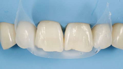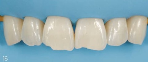 Figura 16 — Os dentes estão devidamente condicionados e o adesivo não se percebe. É uma situação ótima para começar.