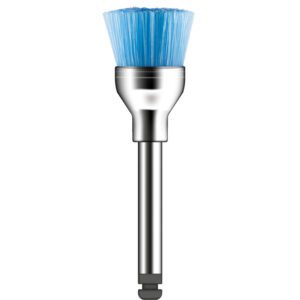 Polimento realizado com caneta de baixa rotação e escovas ou taças de borracha em associação com abrasivos.