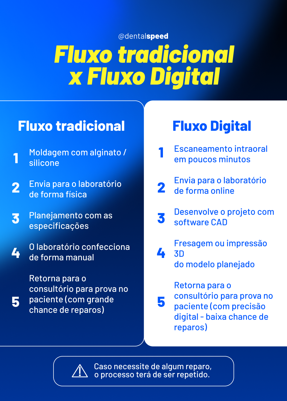 Com o avanço da tecnologia, também é possível o protético aplicar o fluxo digital no laboratório de prótese e oferecer um tratamento mais preciso e eficiente aos pacientes, além de aumentar a produtividade e rentabilidade do laboratório.