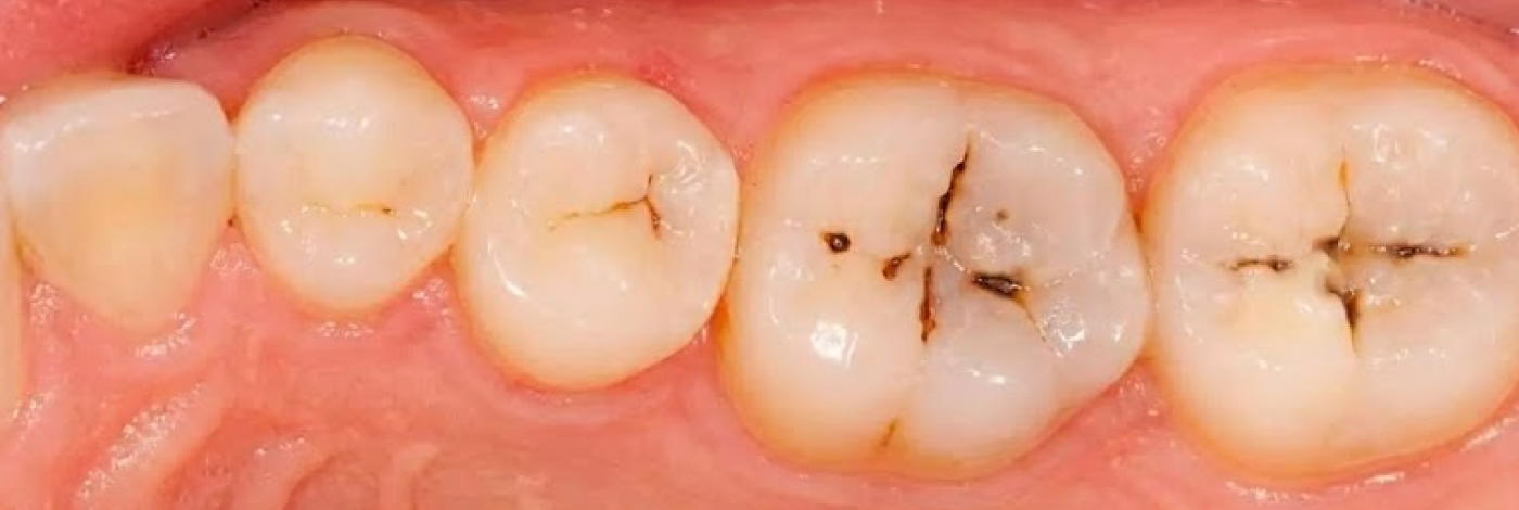 - O contato da saliva com os alimentos e com o flúor acabam escurecendo os sulcos dentários deixando riscos e pontos pretos que, muitas vezes, são confundidos com cáries;